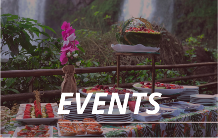 We offer our special catering service for social and corporate events, either at our facilities, in the city of Puerto Iguazú, or in a majestic natural setting such as the Dos Hermanas viewpoint or Devil’s Throat at the stunning Iguazú Falls. (*subject to Iguazú National Park regulations.)